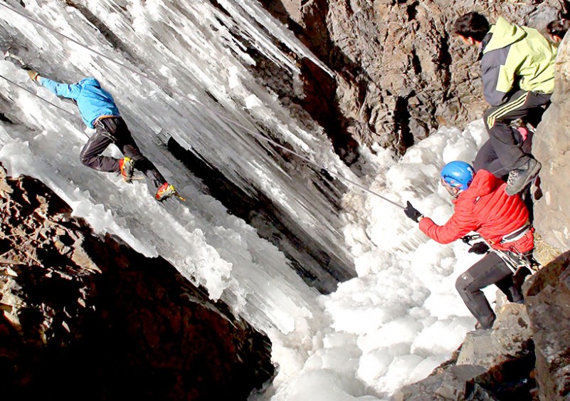 Introducción a la escalada deportiva: nudos, aseguramiento y vías de iniciación. Post almuerzo, navegación por el río Mendoza con rápidos clase II+/III: comandos, remada en equipo, “baños” controlados y fotos.