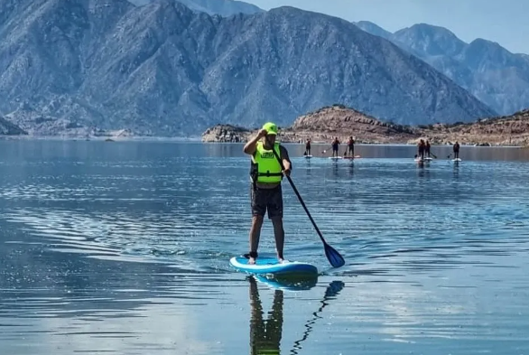 Navegación por el río Mendoza con rápidos clase II+/III: comandos, remada en equipo, “baños” controlados y fotos. Posteriormente actividad de equilibrio, remada y dinámicas lúdicas en tablas SUP, ideal para días tranquilos.